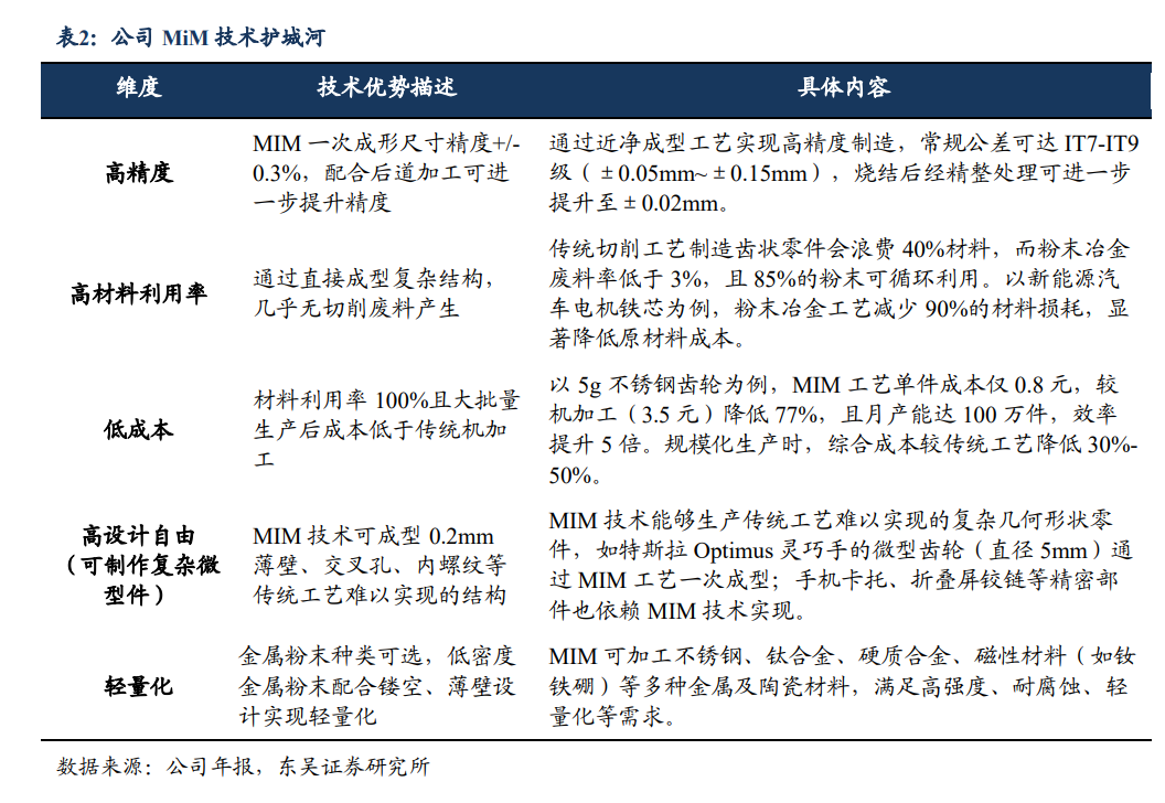 4)MiM技术:人形机器人关节普遍采用精密减速器来提高扭矩输出。MIM技术在这类复杂齿轮传动件上具有显著优势,可制造传统机加工难以实现的微型、高精度齿轮和齿圈。同时,公司依托三大子技术切入齿轮赛道。