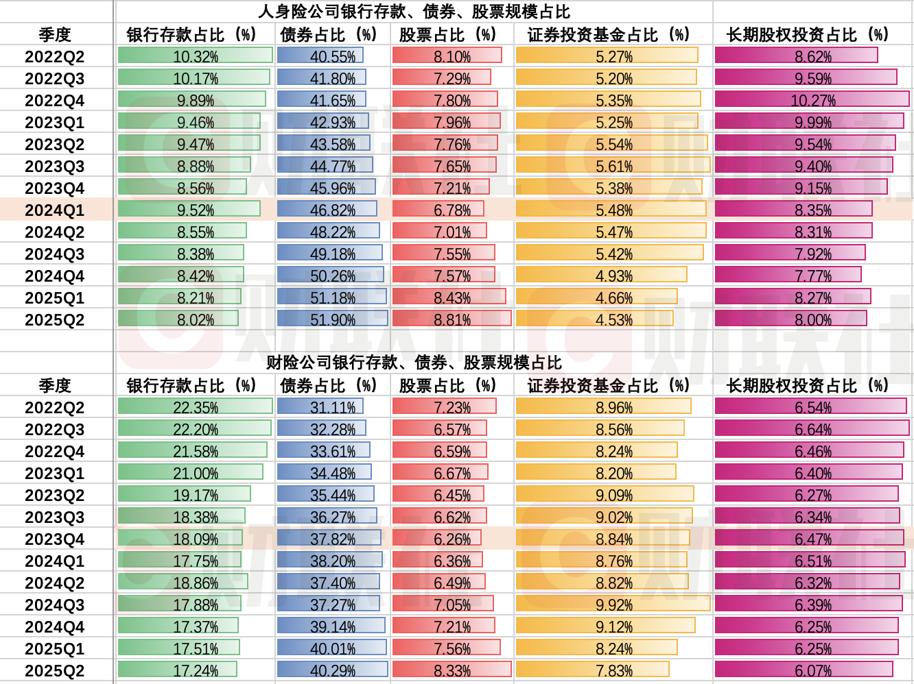 面对整体资产收益率下降的挑战,身处低利率叠加资产荒环境的保险公司资产负债匹配诉求愈发强烈,也倒逼险资加速重构资产底仓。据财联社记者调研了解,在政策引导下,保险公司正加码权益配置,着力增配股票,银行存款和以非标为主的其它类资产则有所减配。