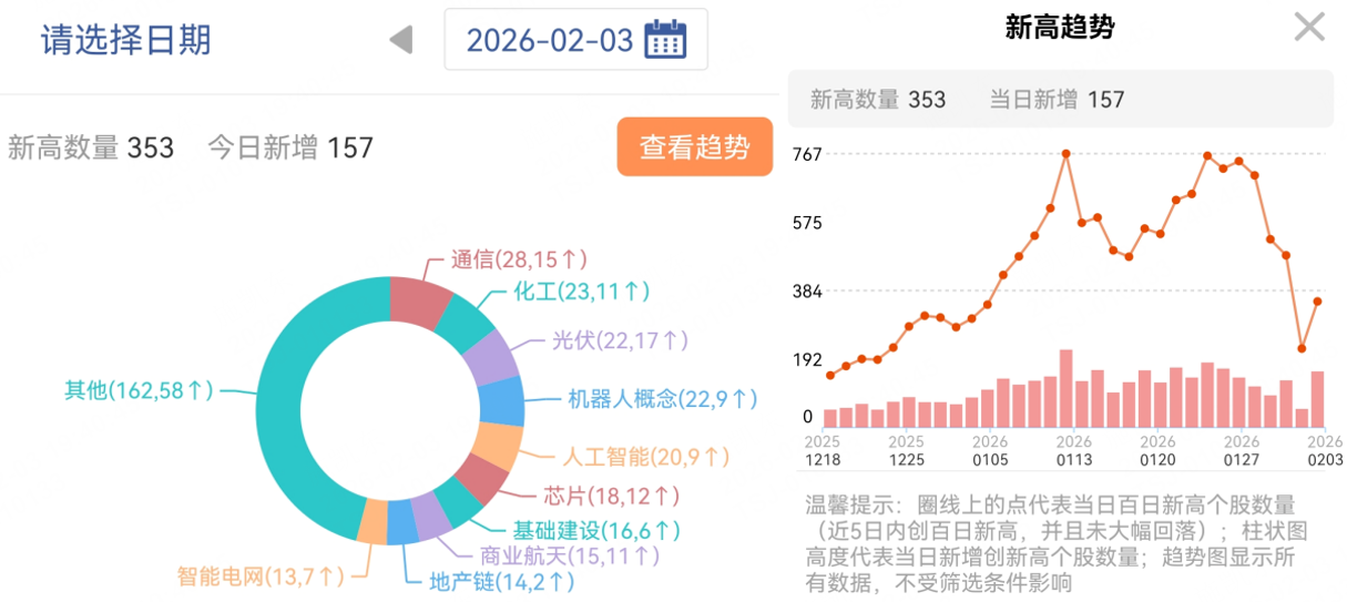从百日新高去看,板块新高数量前4:通信>化工>光伏>机器人