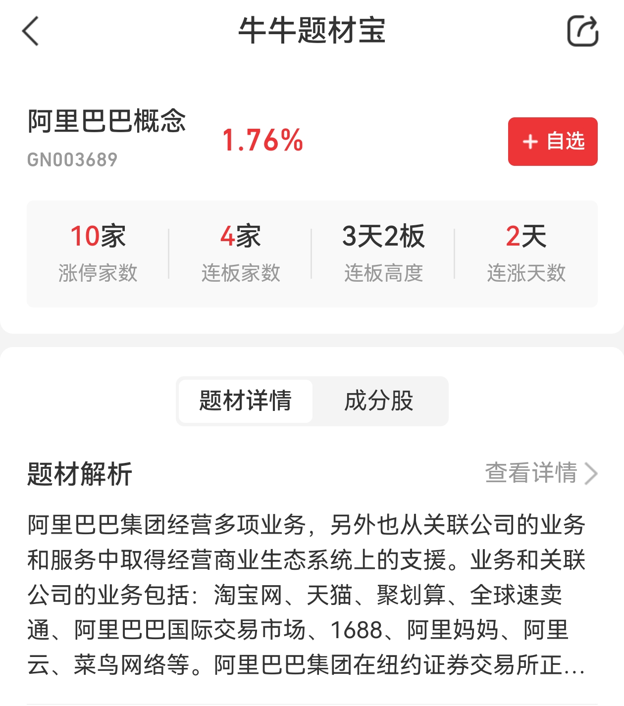 小九注:全面拥抱AI,阿里云收入和利润超预期,牛气冲天!近期该题材资金活跃,今日井喷10只涨停,其中4家连板!后市将如何演绎?点击此处解锁牛牛题材宝——你的题材研究助手,查看详情>>