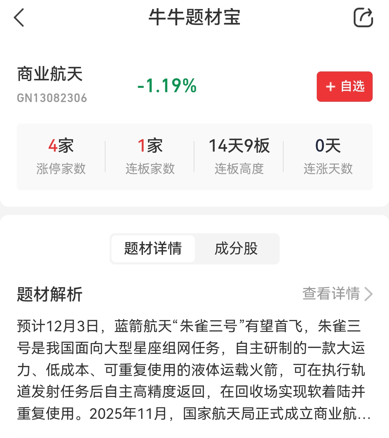 12月3日中午,朱雀三号遥一运载火箭在东风商业航天创新试验区发射升空,按程序完成了飞行任务,火箭二级进入预定轨道,火箭一子级回收失败。