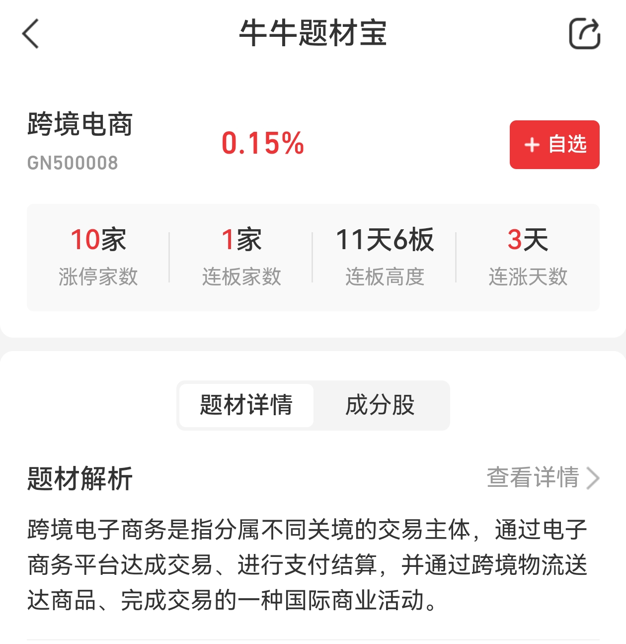 小九注:重磅顶层文件出炉,消费各行各业再迎大利好!跨境电商仅是冰山一角,点击此处解锁牛牛题材宝——你的题材研究助手,了解更多详情>>