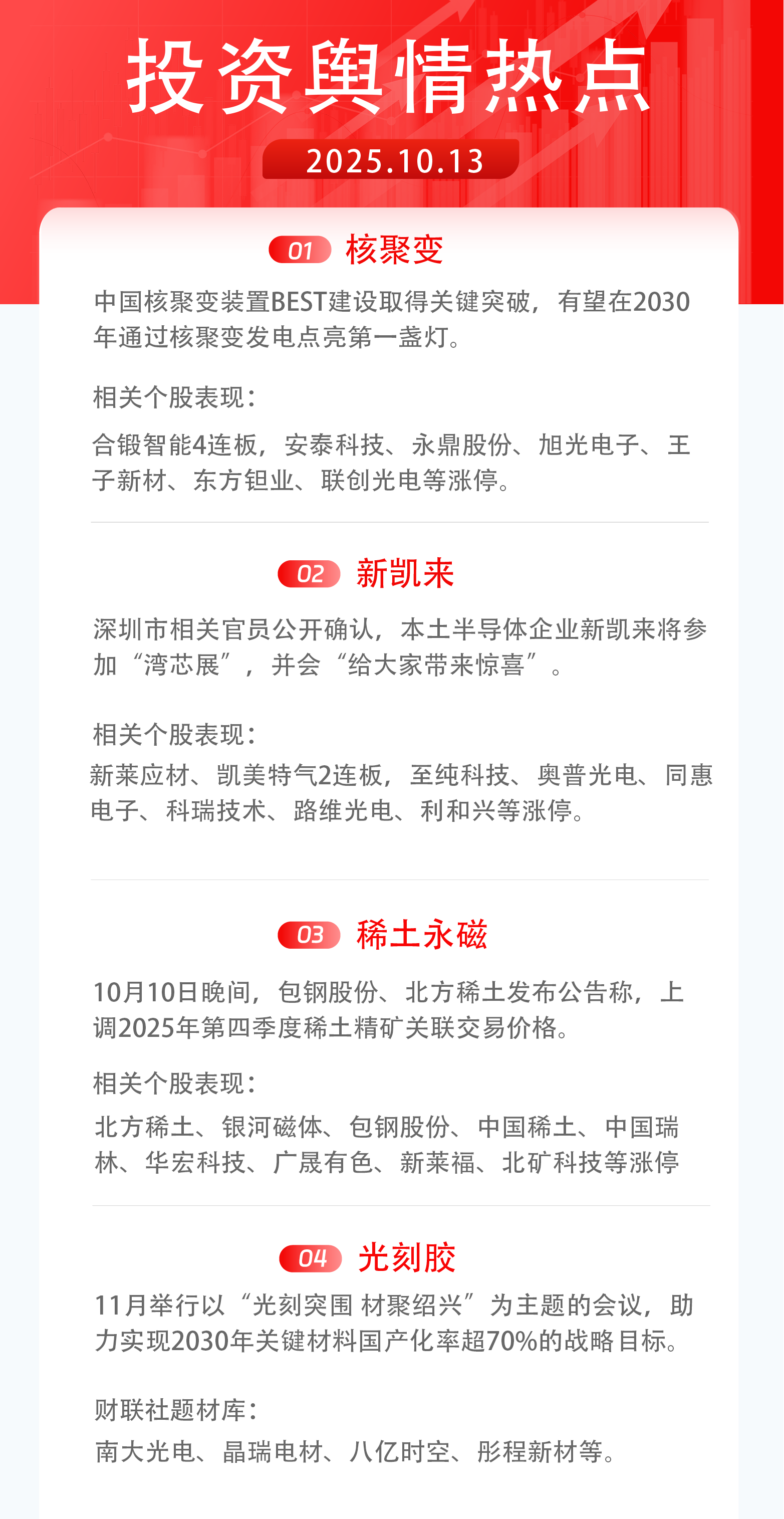 10月13日舆情热点:可控核聚变、新凯来、稀土