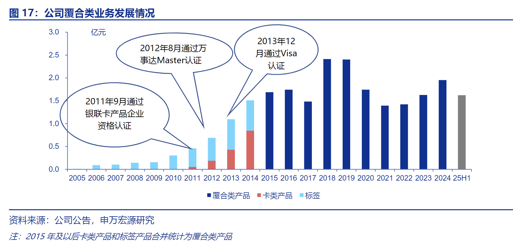 覆合类业务:是公司 过去三年增速最快的业务,主要包括智能卡(金融IC卡、社保卡等)和RFID智能标签。受益于新客户开拓和市场份额提升,该业务在 2025年上半年 实现收入 1.62亿元,同比暴增 133.81%,成为公司现阶段的核心增长动力。