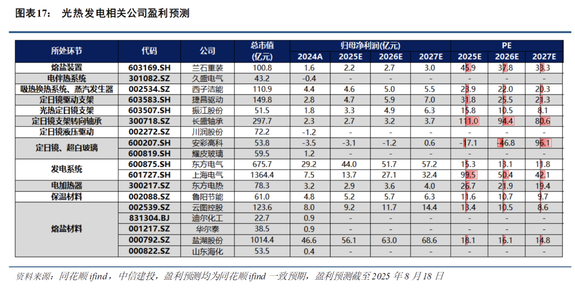 光热产业链相关公司: