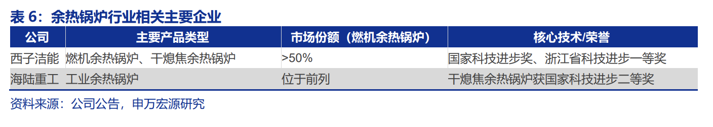 华光环能、海陆重工、东方电气和蓝科高新在锅炉及热能系统装备、余热利用、储能及工程总包等业务方向与西子洁能高度契合。