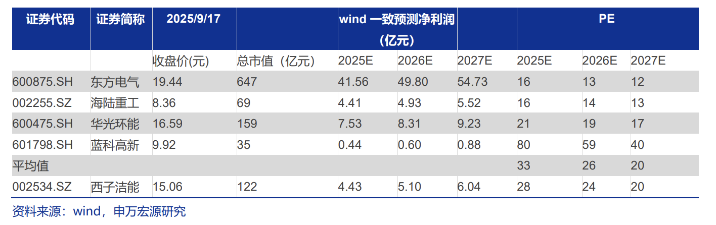 (5)发电系统:东方电气、上海电气;