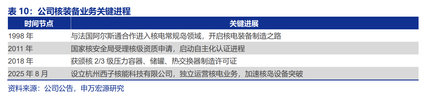 3.聚焦核岛关键设备研发制造,拓展三代/四代核电、可控核聚变等领域。西子洁能在核电领域已有20多年的深耕与发展,已取得民用核二三级制造许可证。公司积极拓展核电设备国际合作,加快向三代核电、四代核电、可控核聚变等领域布局。可控核聚变作为全球能源领域的战略制高点,发展逐步加速,西子洁能依托其高温压力容器技术积累,已在聚变堆外围支撑系统设备领域开展技术储备,有望在未来核聚变示范项目中获取设备订单。
