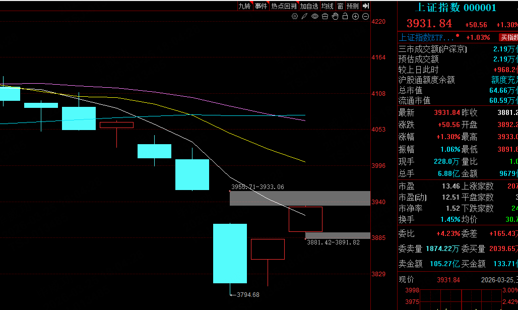 因为今天的市场向上有缺口压力(3933-3955)向下有缺口支撑(3881-3891)。明天如果向上突破缺口,那A股冲击4000点我都觉得不奇怪,如果明天冲高遇阻,周末霍尔木兹海峡再出个利空,那向下补缺口的概率就大了。所以现在市场可上可下的时候,我们要提前做好交易的应急预案。