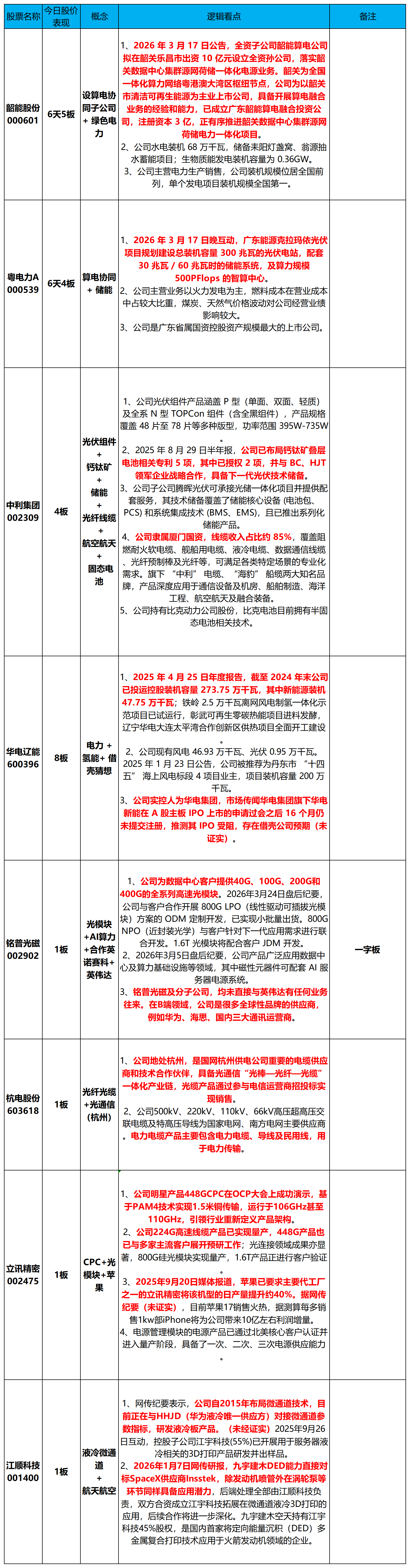 华电辽能600396、中利集团002309、韶能股份000601、粤电力A000539、