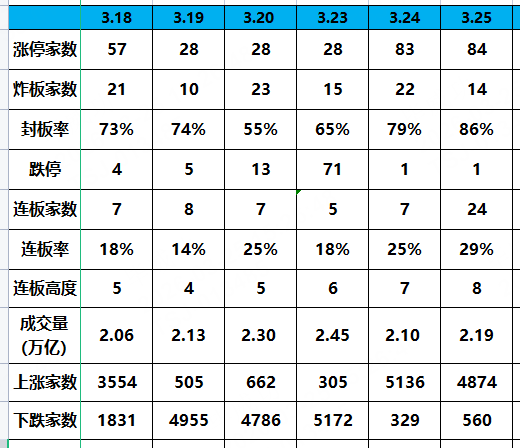 涨停家数84,今天早上两个利好搭配A股内在的情绪三冰点反弹,效果立竿见影,早上10点上板家数都快有40家了,因为涨停的股票比较多,所以市场也很难回落。股民都在想,我手中的股票多拿一拿是不是也能涨停。