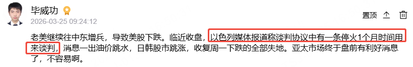 肯定少不了那个男人的助攻。一个消息说:谈判中有一条是“停火一个月大家好好谈”这个消息刺激市场神经。