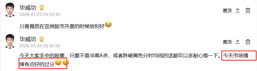 第二个消息是【特朗普:对伊战争“已胜利” 伊朗已准备“达成协议”】一个是盘前,一个是盘中,两个利好分时段发出,形成了1+1大于2的效果。消息刺激下助推市场上午没有明显回落。我早上也是在【打板擒龙圈】中提醒大家行情还在继续,大家别慌,别被洗下车了。盘中交易拿不定主意,记得来圈子里。